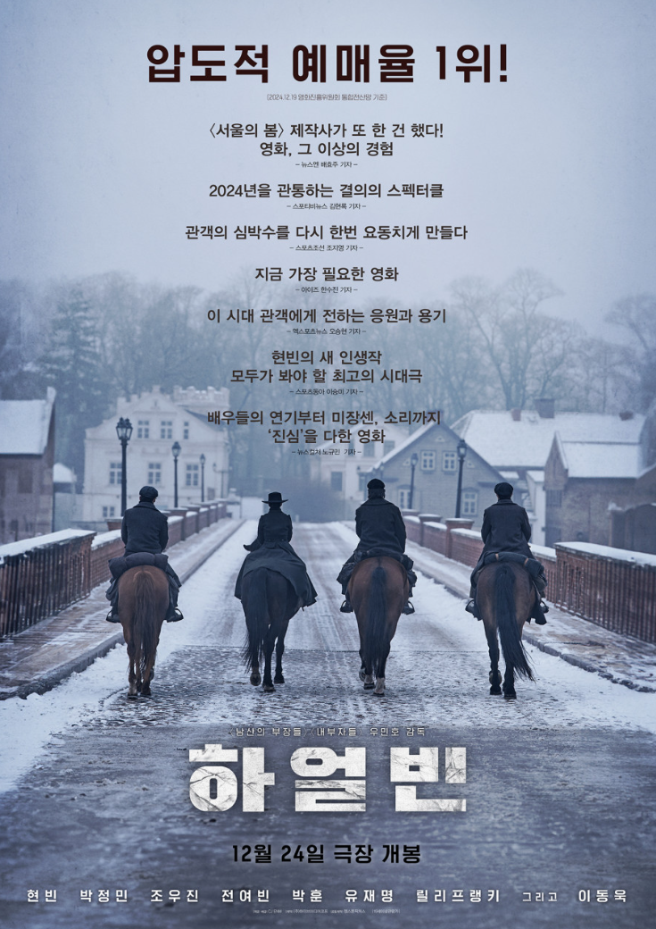 결론: 하얼빈 (2024)은 탄탄한 시나리오, 뛰어난 연기력, 그리고 아름다운 영상미로 역사를 생생하게 되살립니다. 단순한 전쟁 영화가 아닌, 독립을 위해 싸운 이들에게 바치는 헌사와 같은 작품입니다. 액션과 감동, 역사적 깊이를 동시에 즐기고 싶은 관객이라면 꼭 봐야 할 영화입니다.